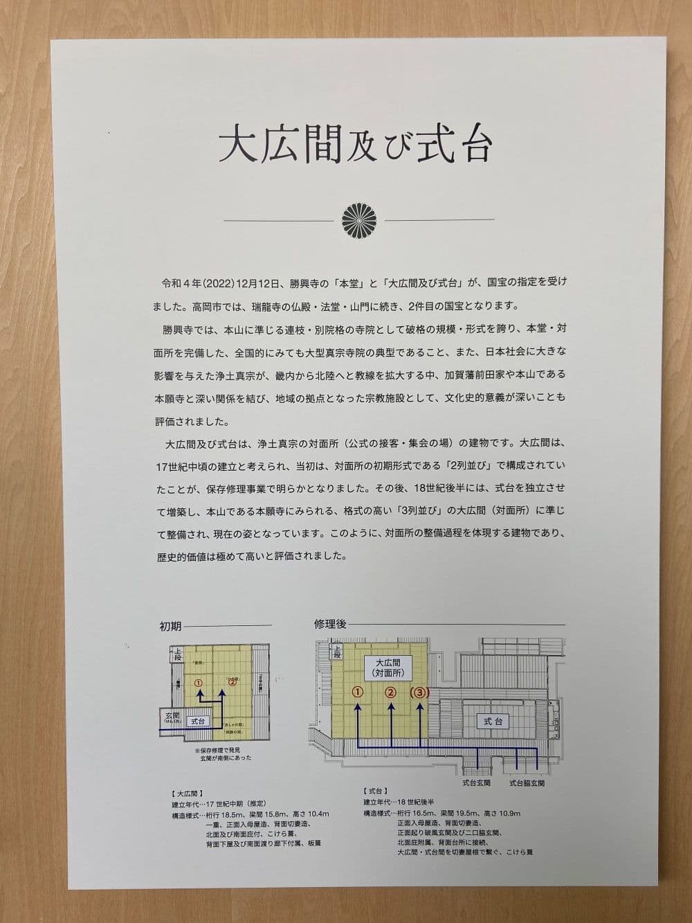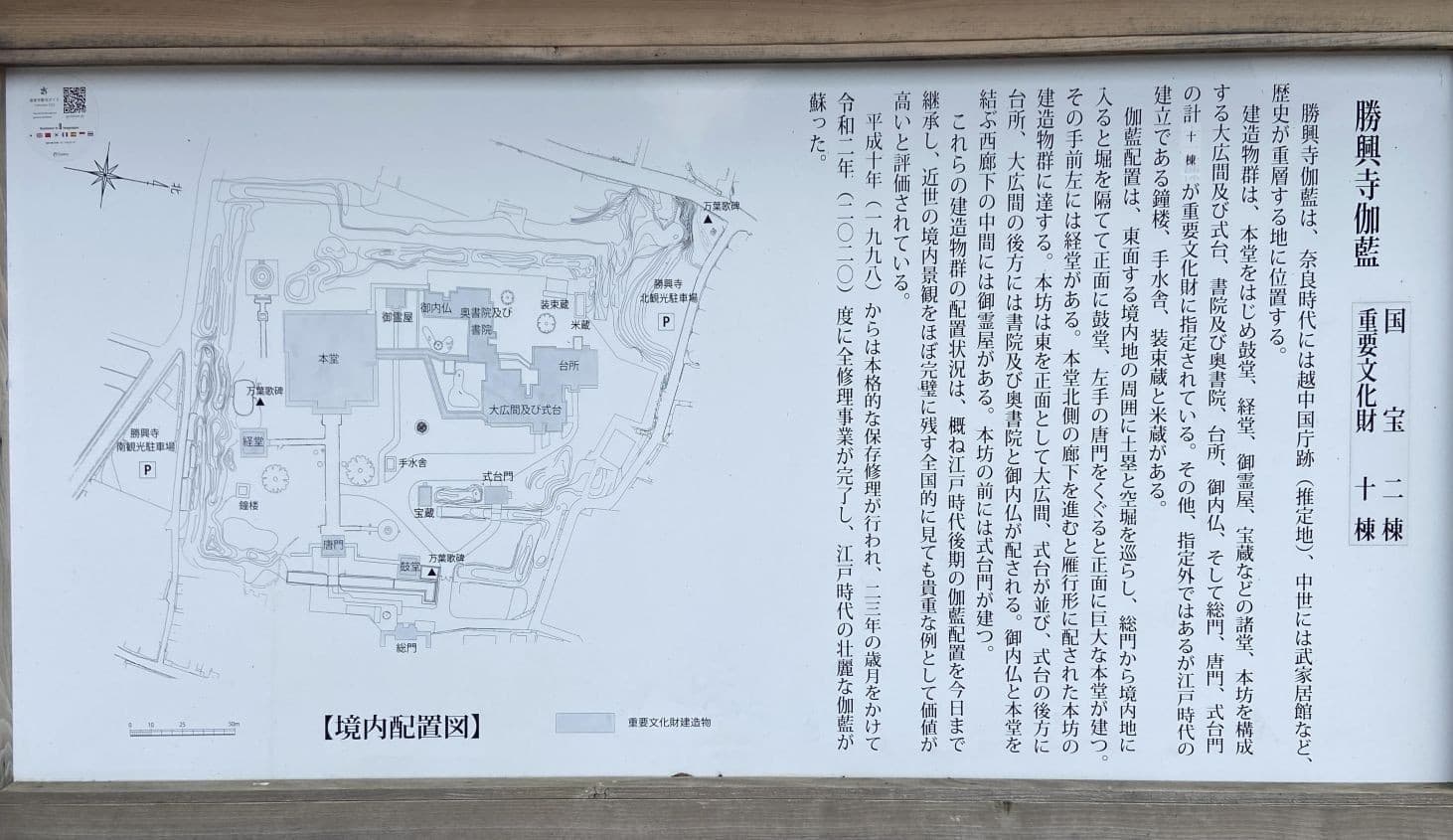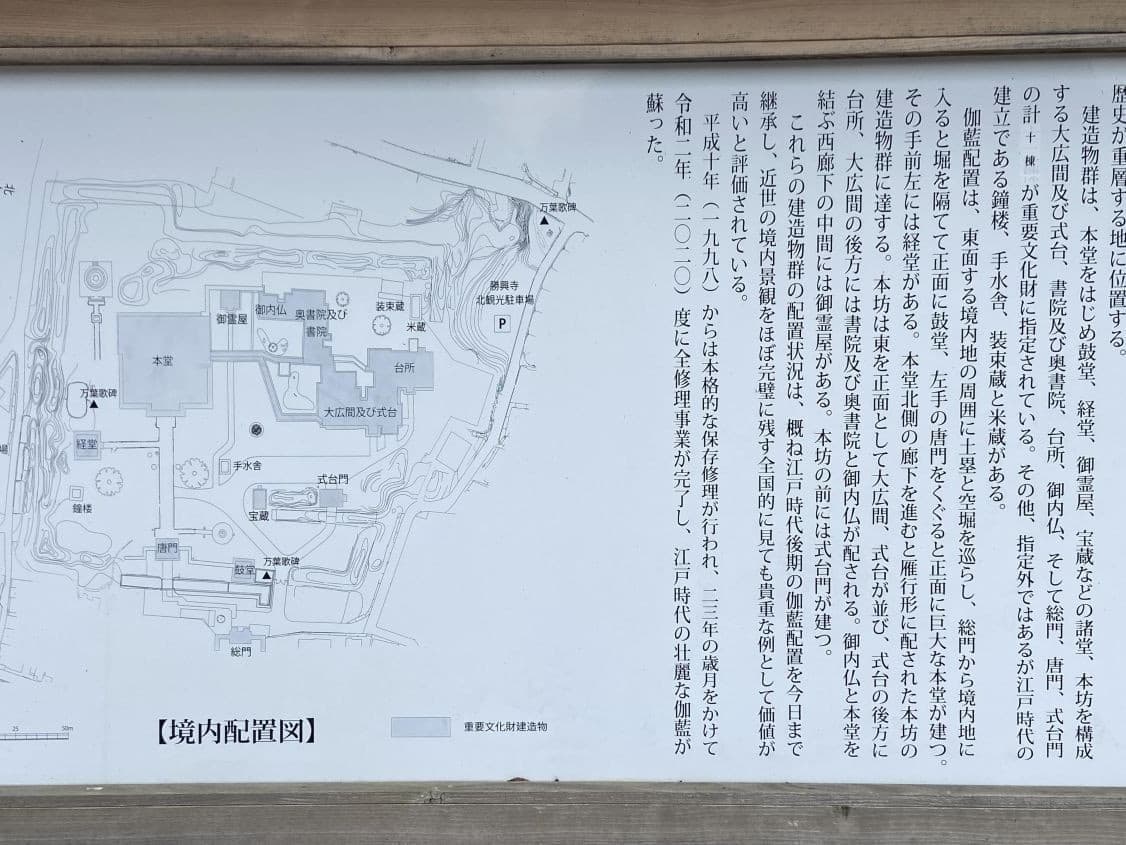 歴史的建造物16棟のうち「本堂」と「大広間及び式台」が国宝、その他10棟が重要文化財に指定されています。
